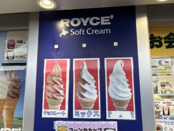 外のフードコートでソフトクリーム(ミックス)を注文。