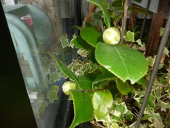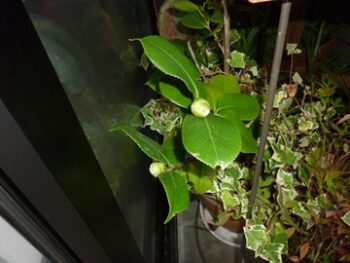 白椿の花・なかなか蕾が膨らみません!楽しみは少しずつ・・・みまもっていきたいと思います。