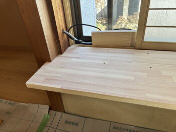 次は出窓部分にテレビを置くために棚を重ねて奥行を延長します!!