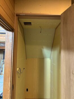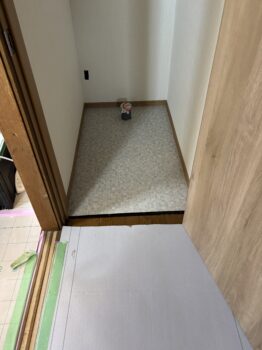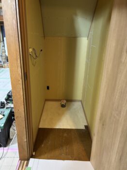 床、壁、天井を全解体して新たに下地を組んで壁を付加しトイレ室を広くします(#^.^#)既存下地が古木で堅くて大変でした( ;∀;)