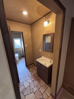 内容は小便器を無くして間仕切壁を洗面化粧台側にあらたに造り天壁クロス貼り替えでした。