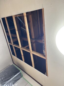 こんにちは!!ミニ大工です(‘◇’)ゞ 今回は天井の部分修繕をご紹介します☆彡 2階の洗面化粧台の排水不具合で1階天井に水漏れし天井材が傷んでしましました( ;∀;) 傷んでいる部分より大きく開口 […]